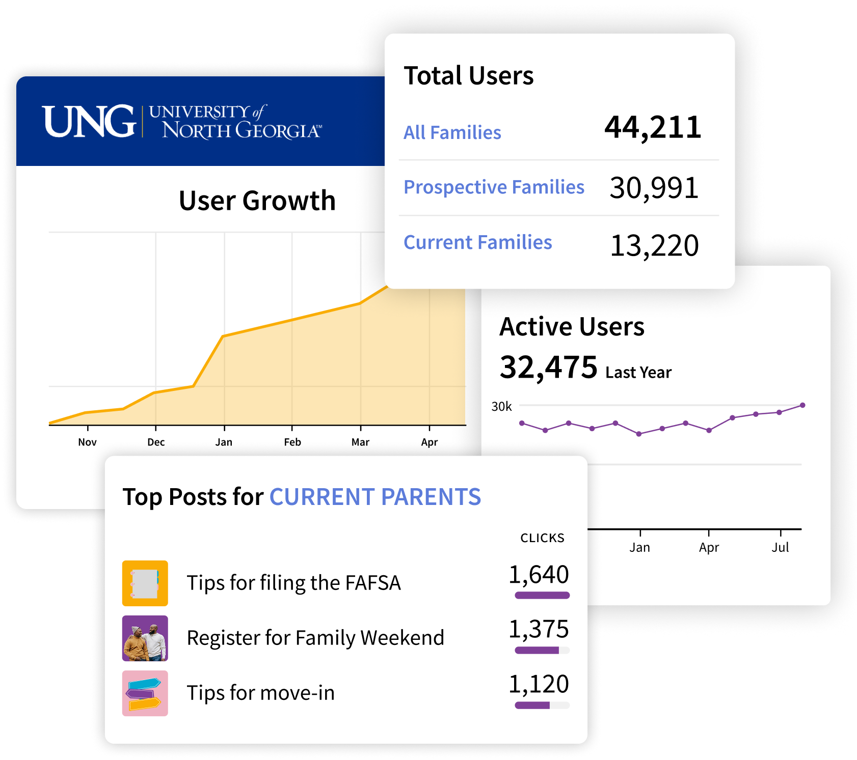 Analytics highlight your most engaged parents, most read content, and usage for key populations. Monthly reports delivered to your inbox summarize results and recommendations, helping you measure ROI.