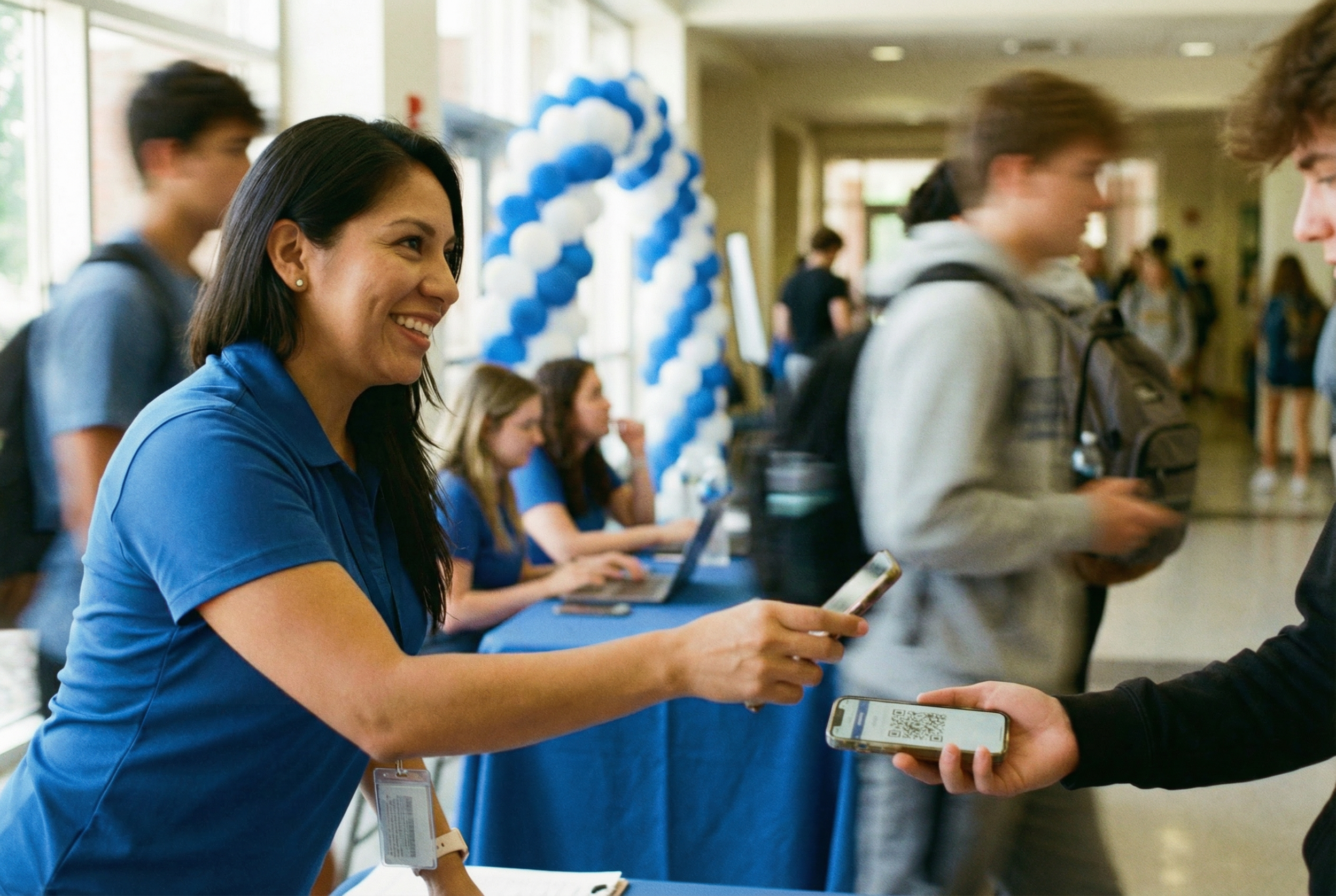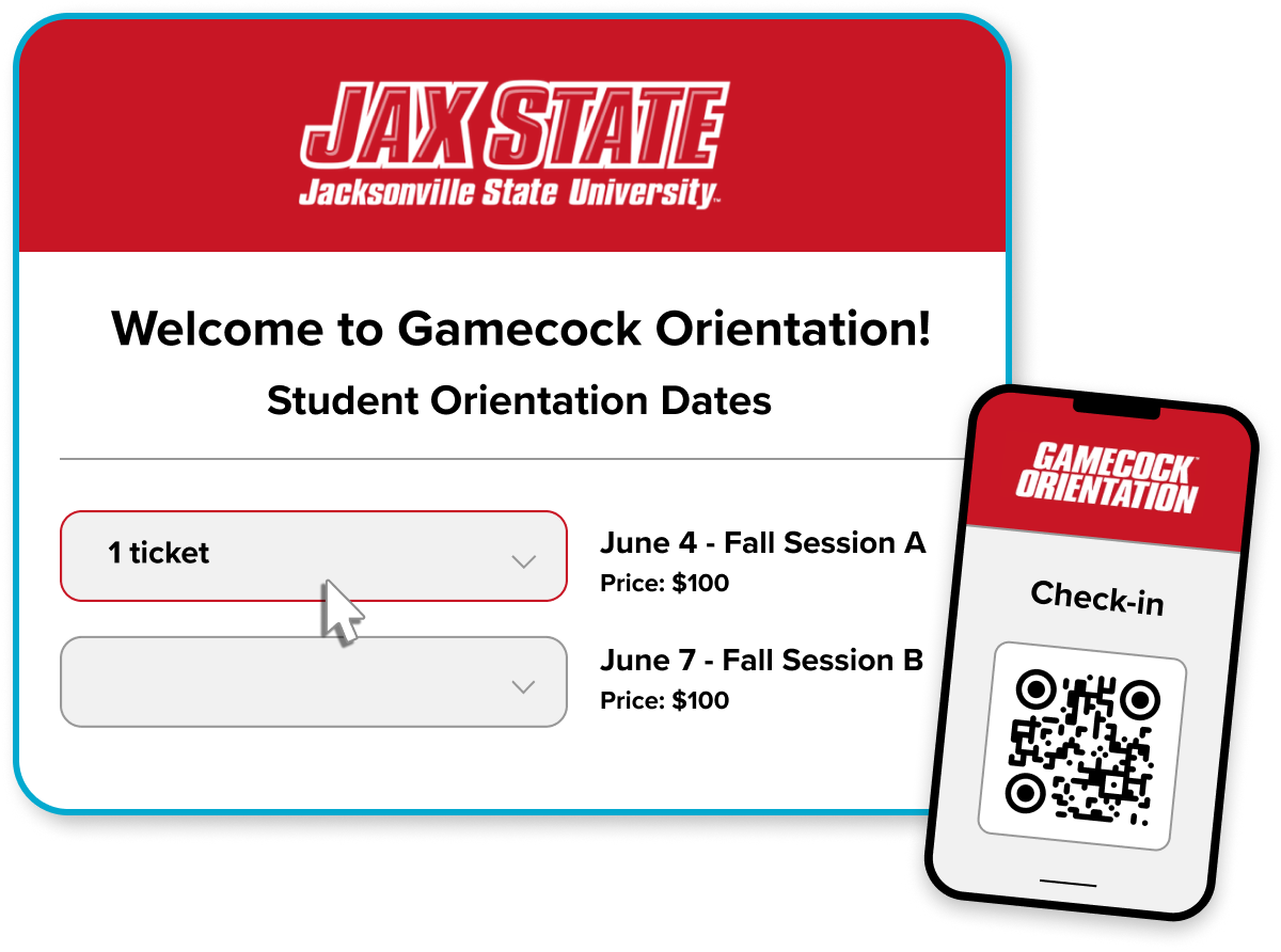 Personalized event forms display session availability, tailored to each unique student type. QR code check-in allows admins and orientation leaders to easily track attendance.